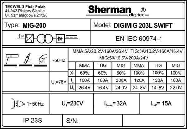 Le DIGIMIG 203L SWIFT synergique Machine de soudage est utilisé pour le soudage manuel de l’acier et des métaux non ferreux. Il permet de souder à l'aide de MMA (électrode enrobée), Ascenseur TIG et MIG/MAG méthodes. La méthode MIG/MAG peut être utilisée en mode manuel et synergique, ce qui simplifie le fonctionnement et permet d'utiliser le poste à souder par des personnes moins expérimentées et des amateurs. En changeant la polarité, l'appareil permet le soudage MIG/MAG avec des fils standards protégés par des gaz protecteurs et des fils fourrés auto-blindés.