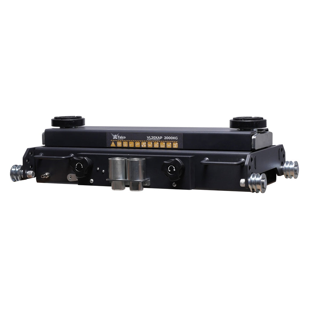 Hydraulische brugkrik met pneumatische bediening 2000 kg Deze brugkrik van Falco Sollevatori is een goede aanvulling voor elke vierkoloms hefbrug of schaarlift. De krik kan dankzij de speciale gelagerde opnamerollen gemakkelijk worden geïnstalleerd en gepositioneerd. De Falco krik heeft een geïntegreerd dual speed systeem, dit zorgt voor een automatische snelle hefsnelheid zonder gewicht en een lagere bestuurbare snelheid wanneer de brugkrik het voertuig optilt. De adapterplaten zijn omkeerbaar, zo kan de brugkrik een minimumhoogte hebben van slechts 90 mm en is de brugkrik ook geschikt voor lage auto's en sportwagens. De brugkrik is uitgerust met verstelbare rubberen opnamepads incl schroefdraadspindel en hoogte-adapters. Dankzij de ingebouwde zaksnelheidsregeling kan een voertuig veilig worden verlaagd met minimale snelheidsafname. Zodra de belasting van de krik af is, zal de verlaagsnelheid automatisch toenemen om de werkflow efficiënter en veiliger te werken.
