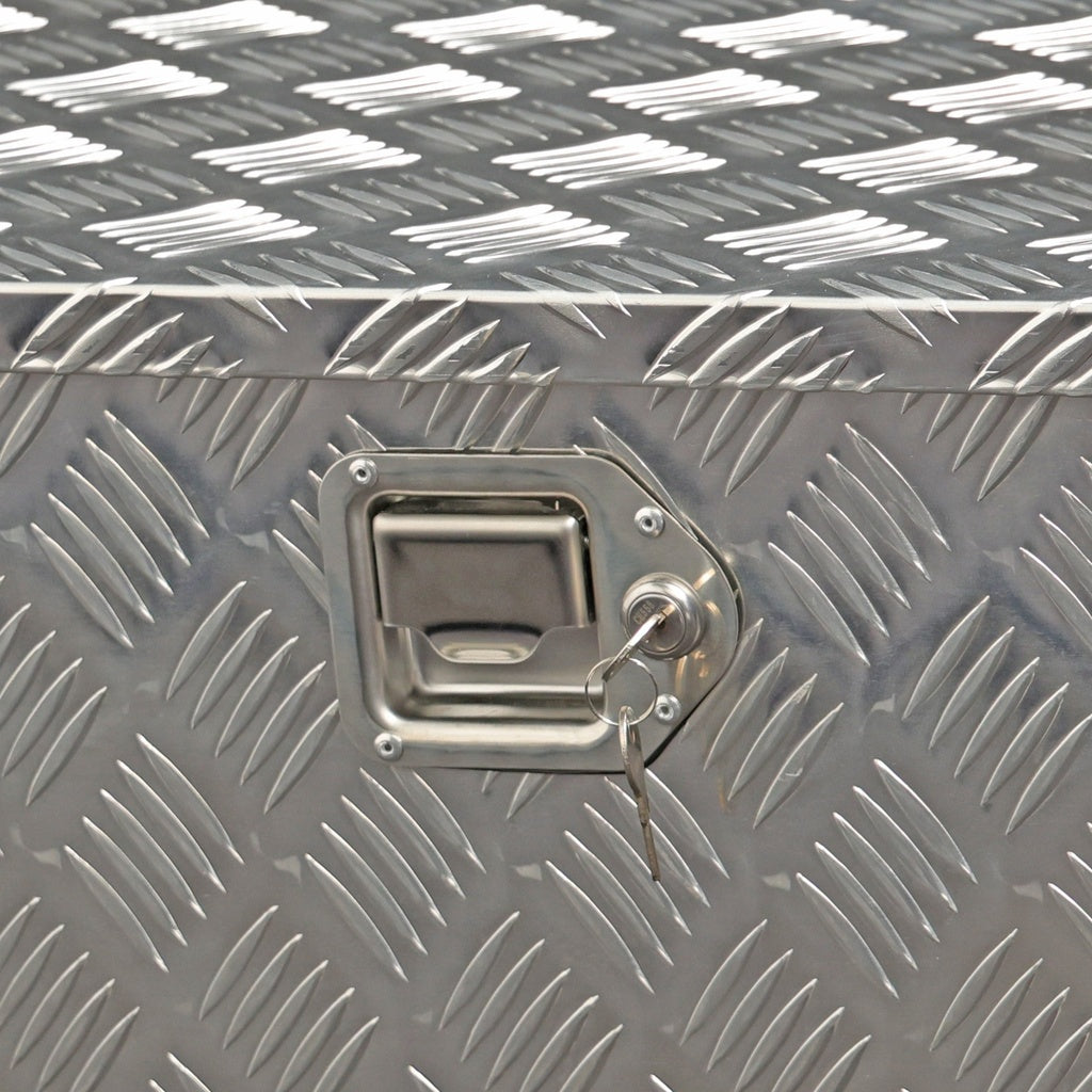 Uitgevoerd in 1,3 mm aluminium traanplaat voor extra grip en stootvastheid. Met een gewicht van slechts 5,7 kg is de aluminium opbergkist licht, sterk en goed hanteerbaar. De afdichting in de deksel zorgt voor een spatwaterdichte en stofwerende sluiting.   Roestvaststalen handgrepen aan beide zijkanten maken verplaatsen eenvoudig. Voor het veilig afsluiten is de aanhangerkist uitgerust met een geïntegreerd sleutelslot, geleverd met twee sleutels. Scharnieren en sluitonderdelen in RVS bieden langdurige bescherming tegen vocht en vuil.   Belangrijkste kenmerken: