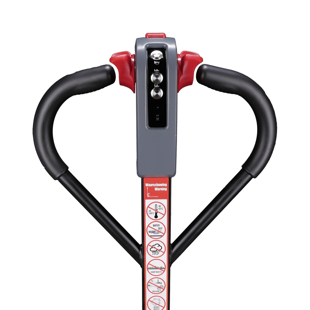 Bediening verloopt via de dissel, met elektrisch rijden, heffen en dalen zodat de fysieke belasting tijdens pallettransport afneemt. Aandrijving gebeurt via een borstelloze motor om het onderhoud aan de motor te beperken, terwijl polyurethaanwielen zorgen voor stabiele rijeigenschappen en goede tractie op vlakke, gladde vloeren.