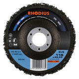 - Gebruik aanpak: Het gebruik van het Rhodius SVS Reinigingsvlies is alleen aanbevolen voor regelbare haakse slijpers. Bij een onjuist toerental kan het vlies smelten. Het optimale toerental ligt tussen 3.000 en 7.000 RPM.